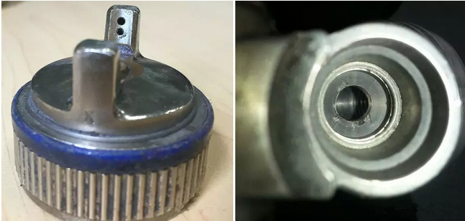 二、風(fēng)帽霧化孔堵塞▼