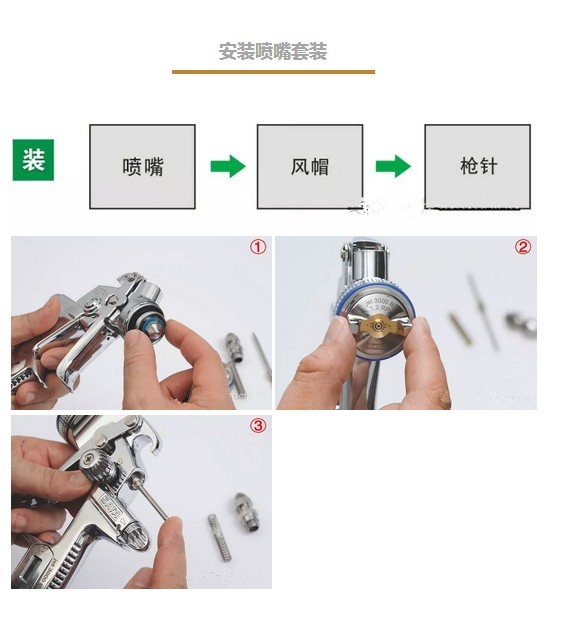 § 請(qǐng)使用原裝工具安裝、拆卸噴槍配件。