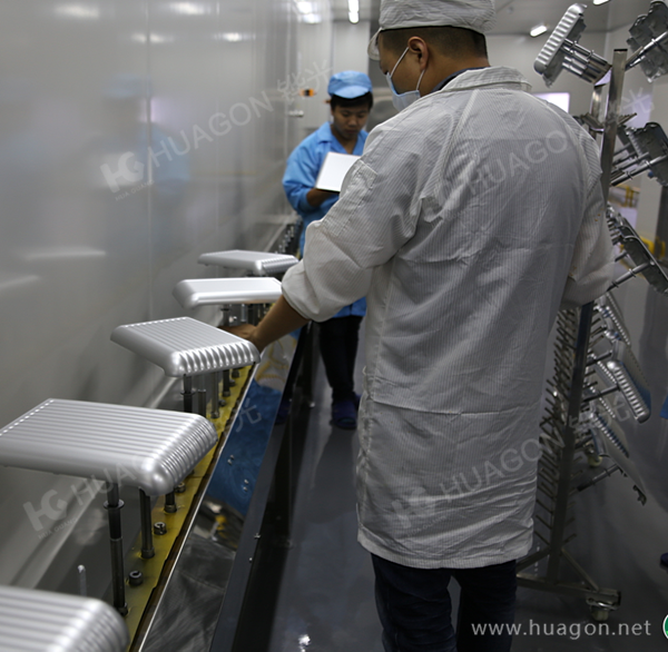 上料-手動靜電除塵-素材預(yù)熱-自動靜電除塵-自動噴涂-靜置-烘烤-冷卻-下料
